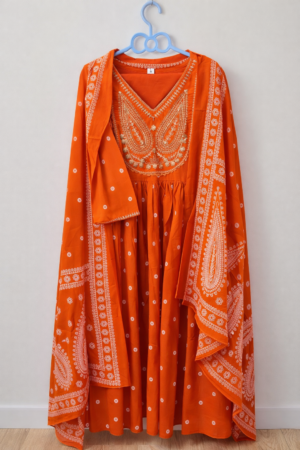 Rust Orange Embroidered Cotton Anarkali Kurta Set