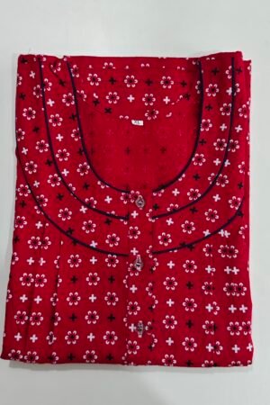 Red Floral Printed Cotton Nighty for Women (Maxi Length)