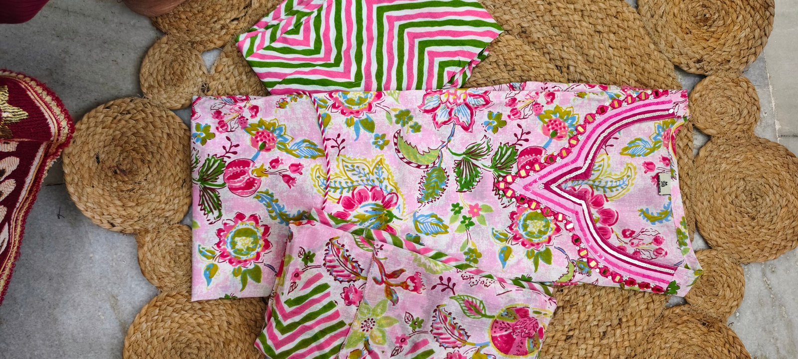 Be the first to review “Elegant Floral Cotton Kurta Pant Dupatta Set for Women” Cancel reply