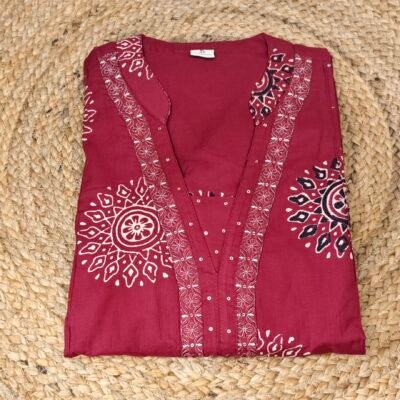 Classic Red Printed Cotton 3-Piece Kurta Set for Women