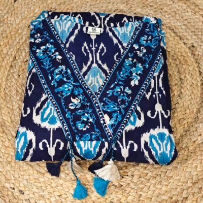 Navy Blue Printed Cotton Kurta Set with Dupatta (3-Piece Set)